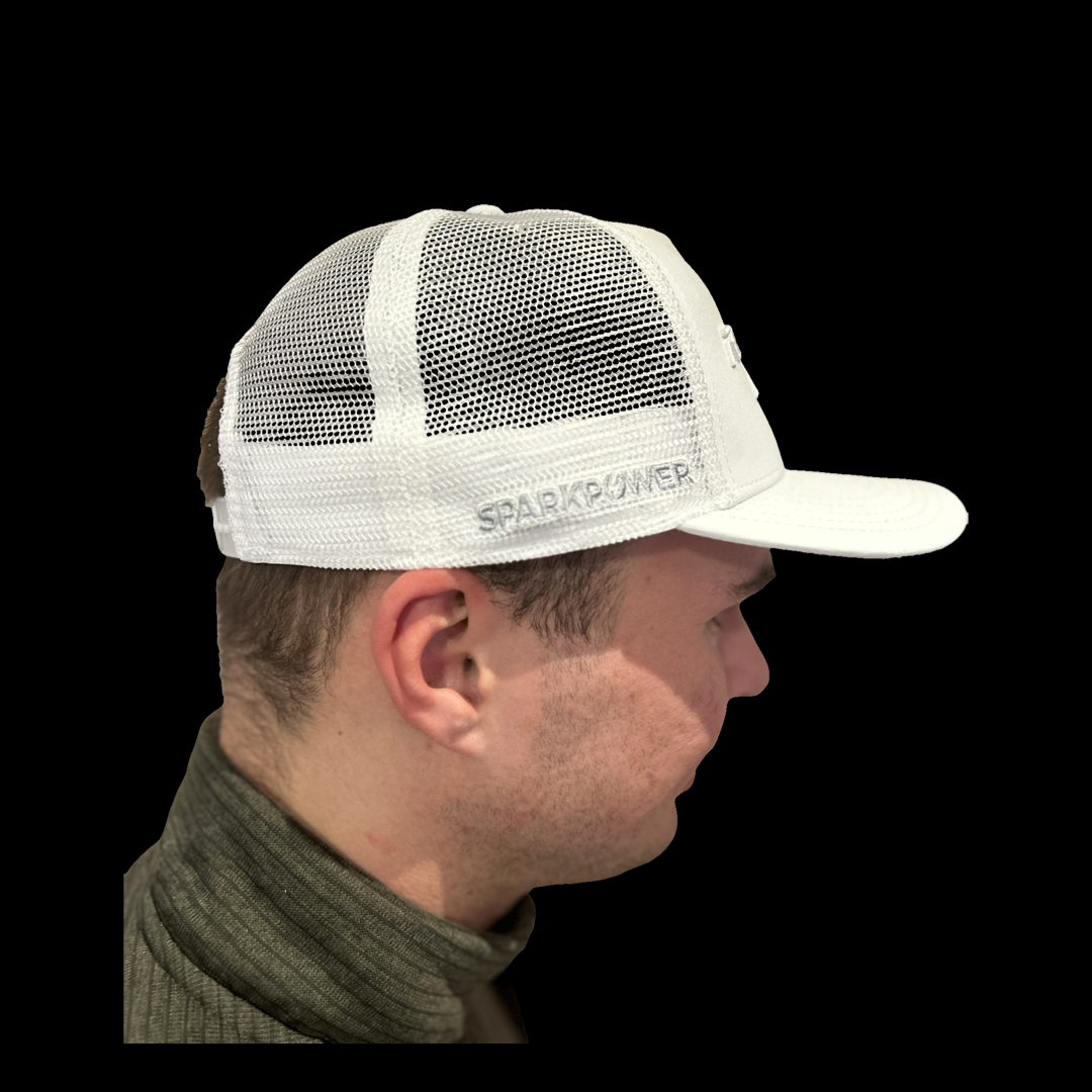 This beautiful all white hat will certainly be an attention getter. All white front, brim and trucker mesh, make this hat a winner. Only available in limited quantities.